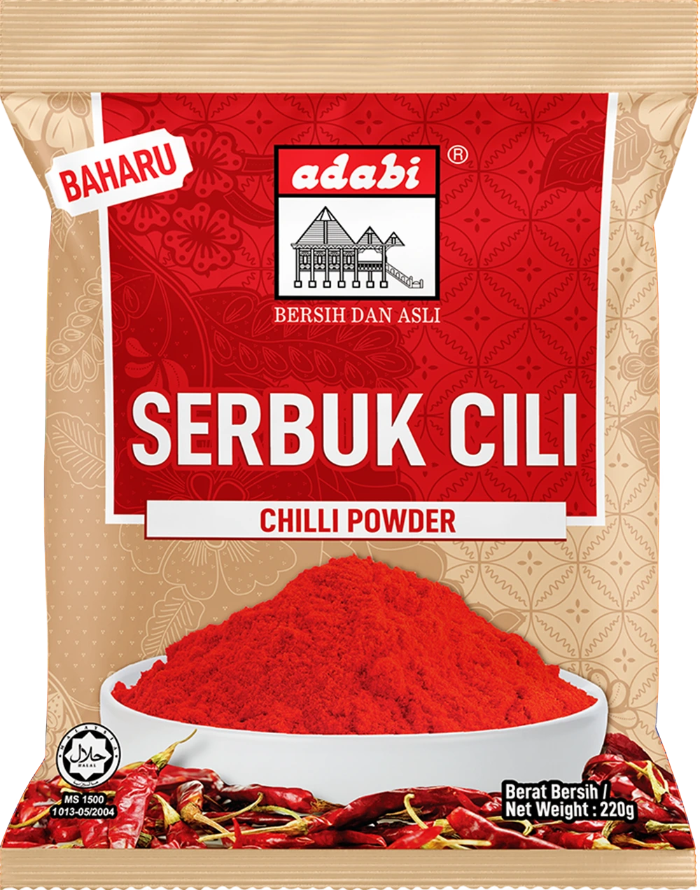 Ingredients A: 125ml Cooking Oil, 5 Shallots, 2 cloves of Garlic, 2 tbsp Adabi Chilli Powder, 1 Red Onion, 125ml Water