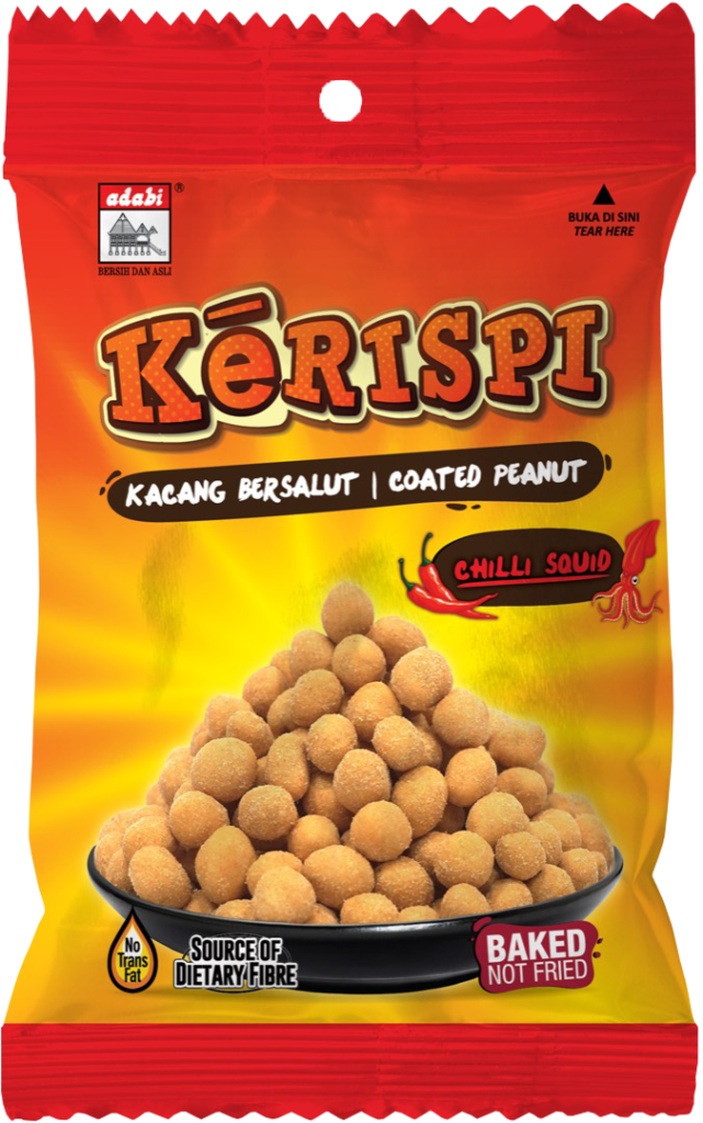 A coated peanut base snack with tasty squid flavour! It comes in three types of variants: Original Classic Squid Chilli Squid