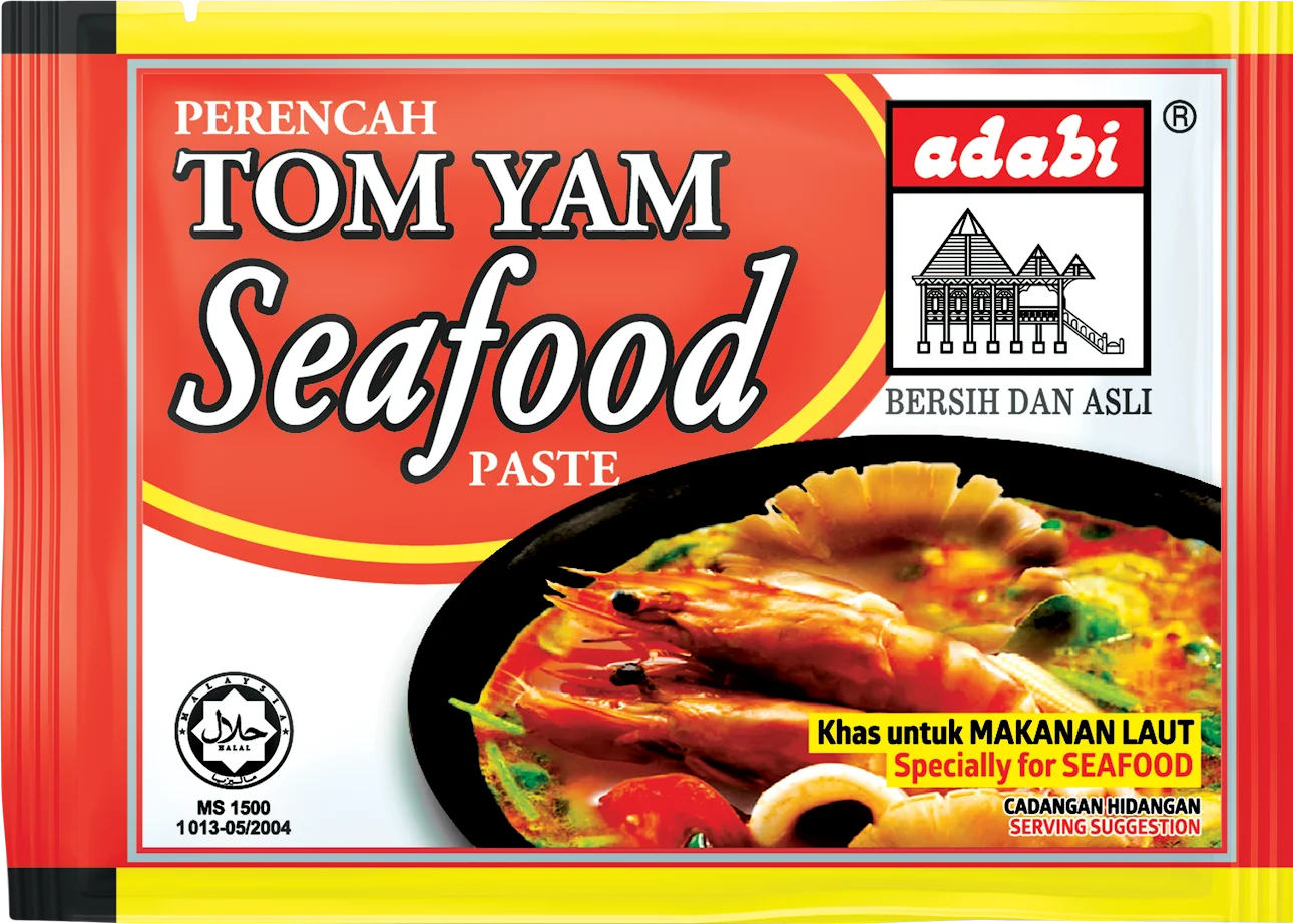 Heat up Adabi Seafood Tom Yam Paste with 150g of seafood (cleaned) into 2 cups of water. Bring it to boil.